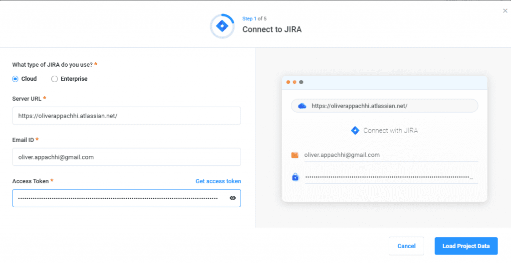 Select Import Issues from JIRA, After adding valid credentials, choose the JIRA project & Bugasura sprint.