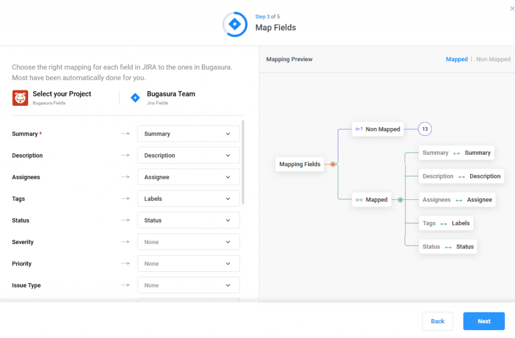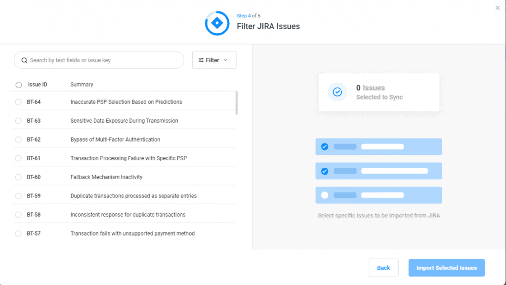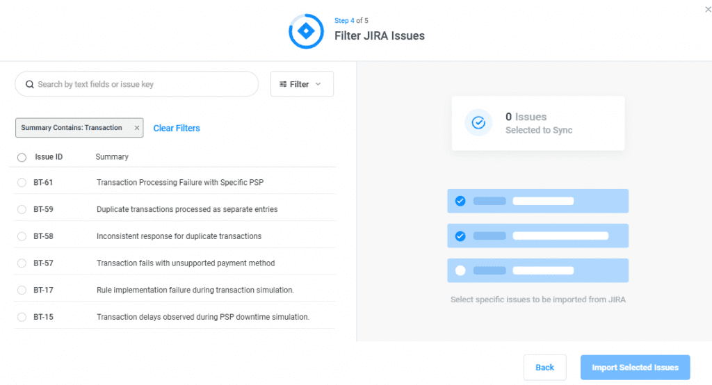 Once the fields are mapped, in the step 4 filter issues using the advanced filter panel. Fetch Jira issues based on your selected criteria. Select only the issues you want and import them into Bugasura.