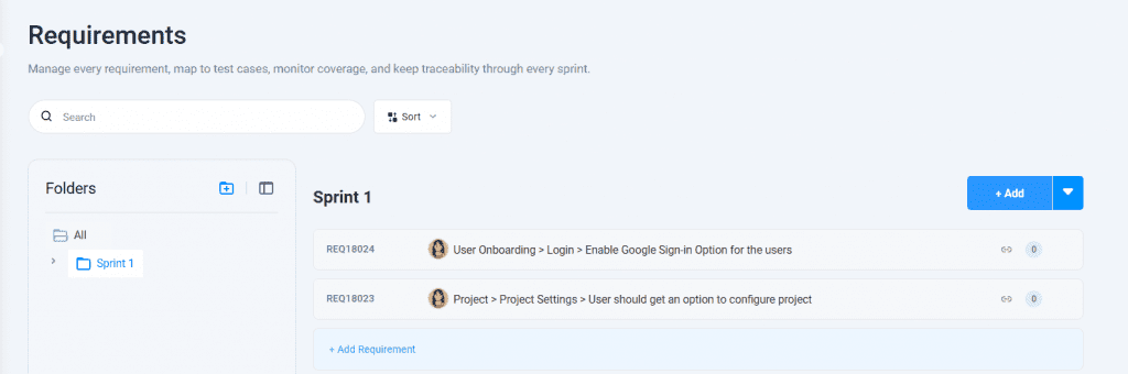 To get started, head over to the Test Repository or Requirements section of your project. From there, you can create and manage folders independently. With dedicated folder structures, your tests and requirements remain organized and much easier to maintain.