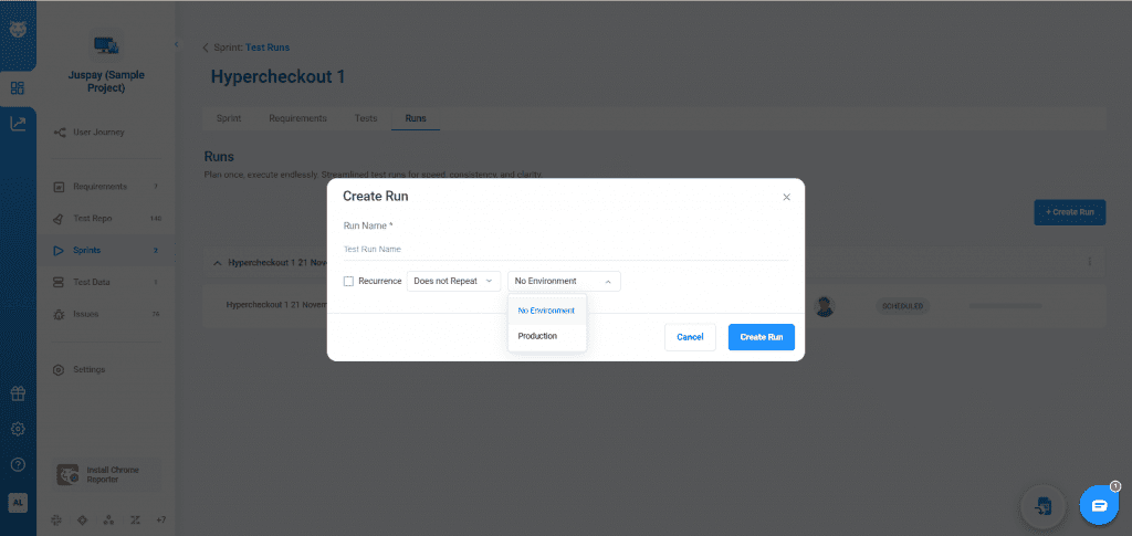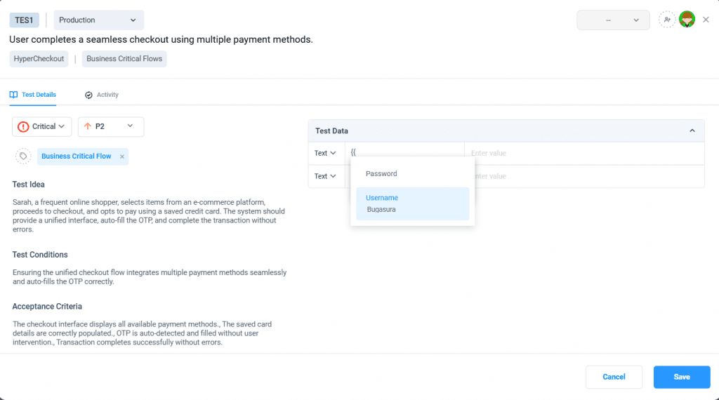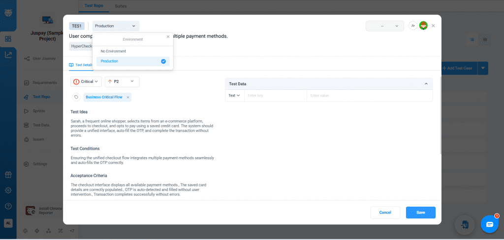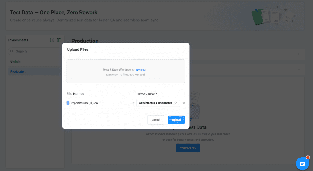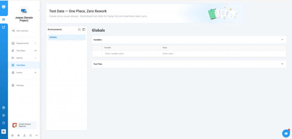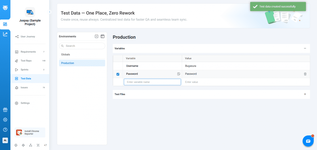 Managing test data is now simpler and more reliable. With environment-based test data, you can define values once and reuse them across Projects, Sprints, and Runs—removing duplication and reducing errors. This creates a cleaner, more scalable testing workflow similar to Postman environments.