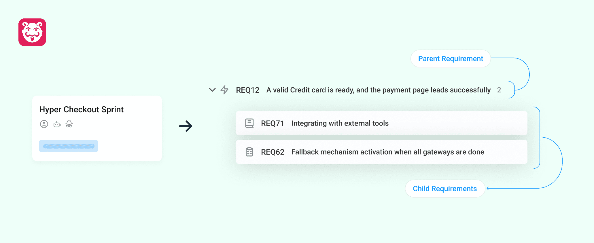Within Sprint Requirements, users can view requirements organized in a parent–child hierarchy. Parent requirements can be expanded to reveal their associated child requirements.