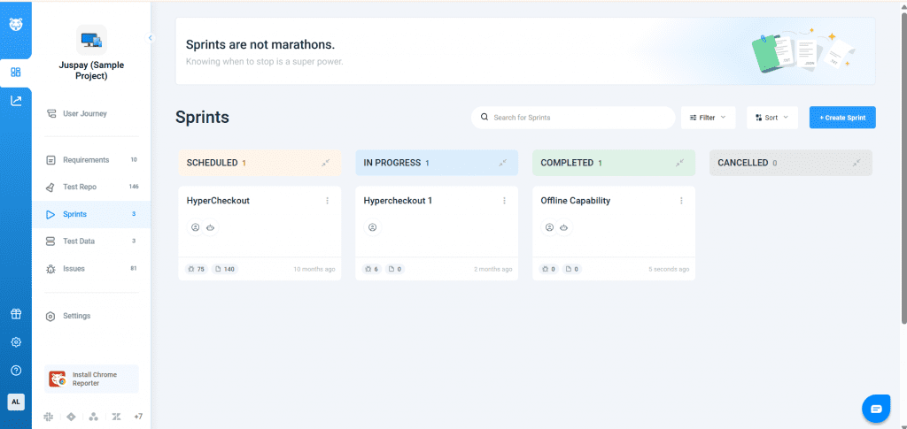 • Faster Updates: Drag and drop sprints to update their status.